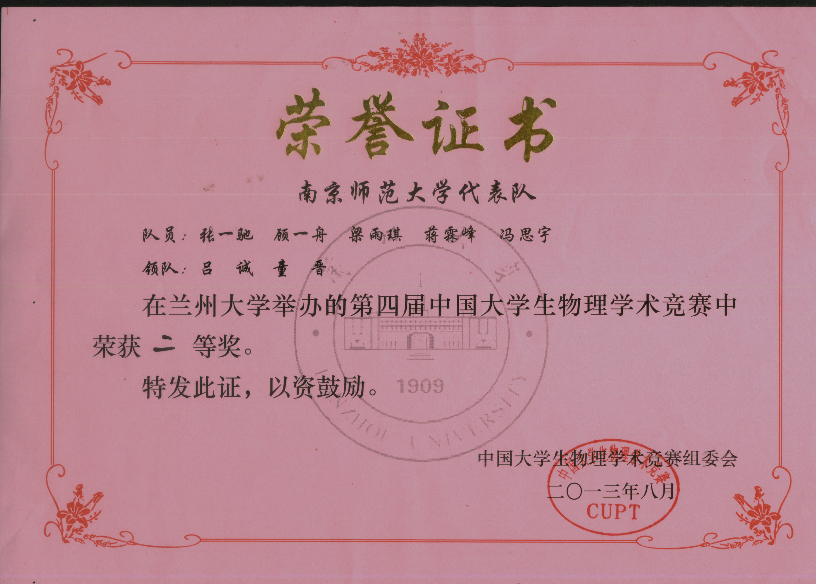 下一条:2014年中国大学生物理学术竞赛(CUPT)获奖证书