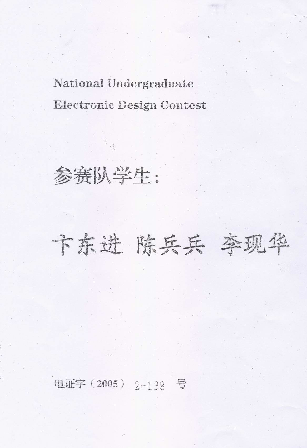 下一条:2007年全国大学生电子设计竞赛一等奖证书