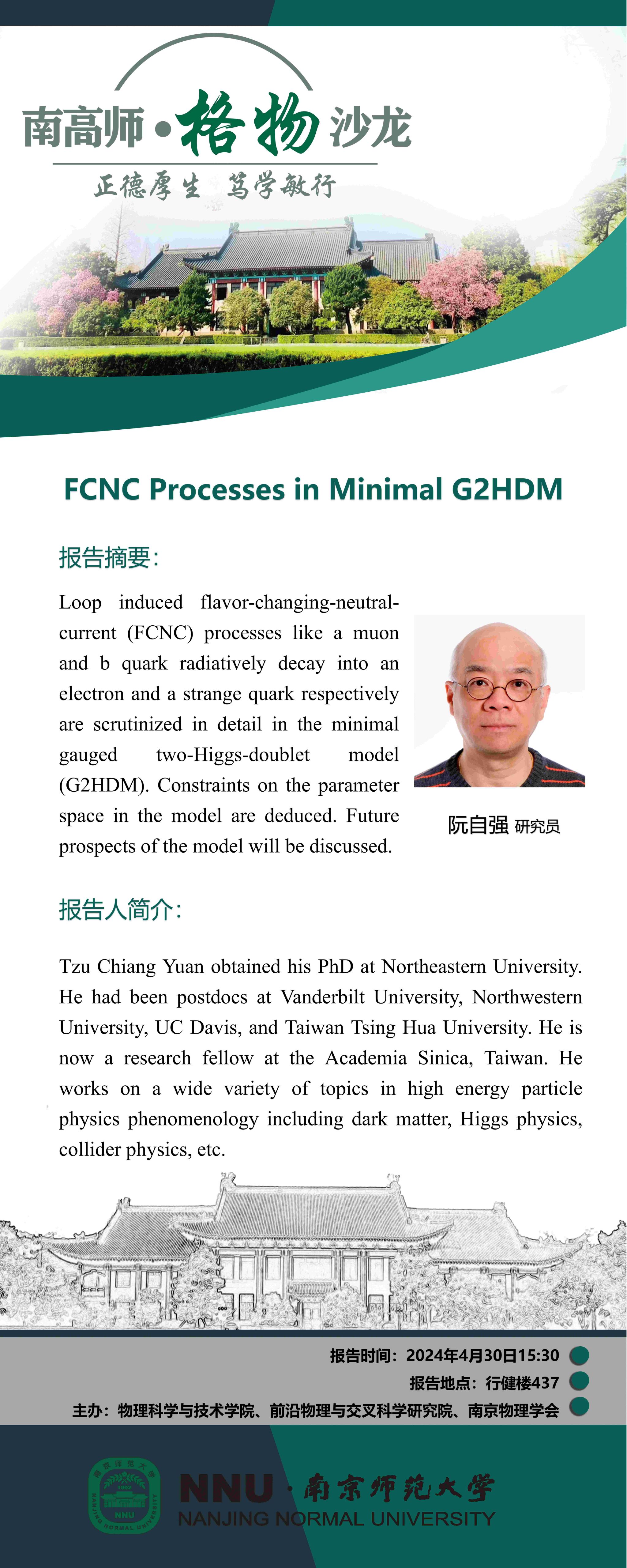 【学术预告】“南高师·格物沙龙” FCNC Processes in Minimal G2HDM--阮自强研究员
