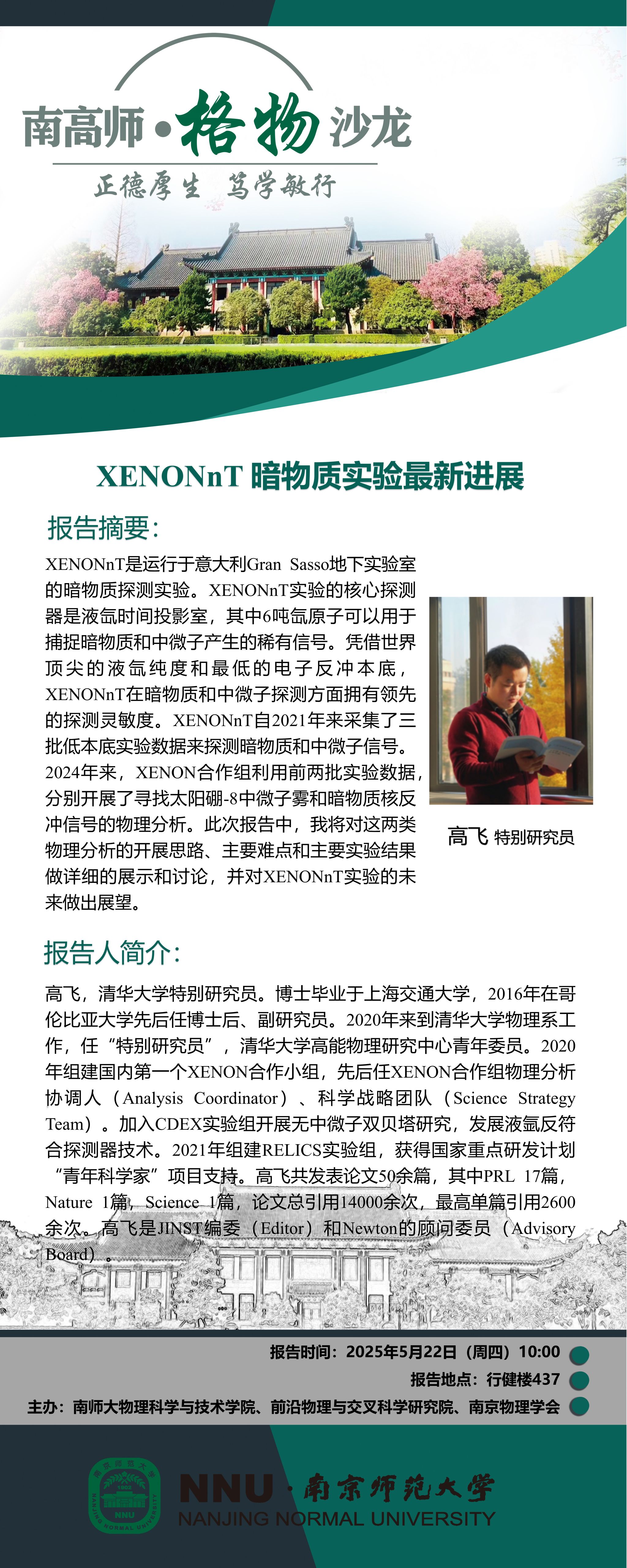 下一条:【学术预告】“南高师·格物沙龙” Phenomenological studies on searching for long-lived particles with displaced vertices and jets at the LHC--王泽人副研究员
