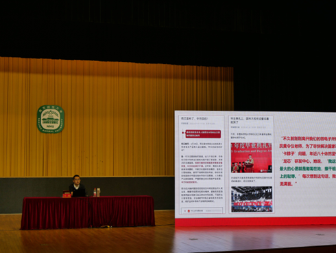 11月4日下午,党员发展对象集中培训在新北大礼堂顺利举行,本次培训由学校党委组织部(党校)主办,物科院党委承办。马克思主义学院教授王磊老师做《世界百年未有之大变局中的青年担当——学习领会习近平新时代中国特色社会主义思想》专题报告。王磊老师列举了荷兰将半导体纳入出口管制,华为遭受技术封锁等事件,使同学们深刻体会到当今世界正处于百年未有之大变局,国家发展与民族复兴仍然任重道远的现状,他提醒同学们要保持忧患意识,厚植家国情怀,牢记实干兴邦,克服本领恐惧,做一名合格的新时代青年。