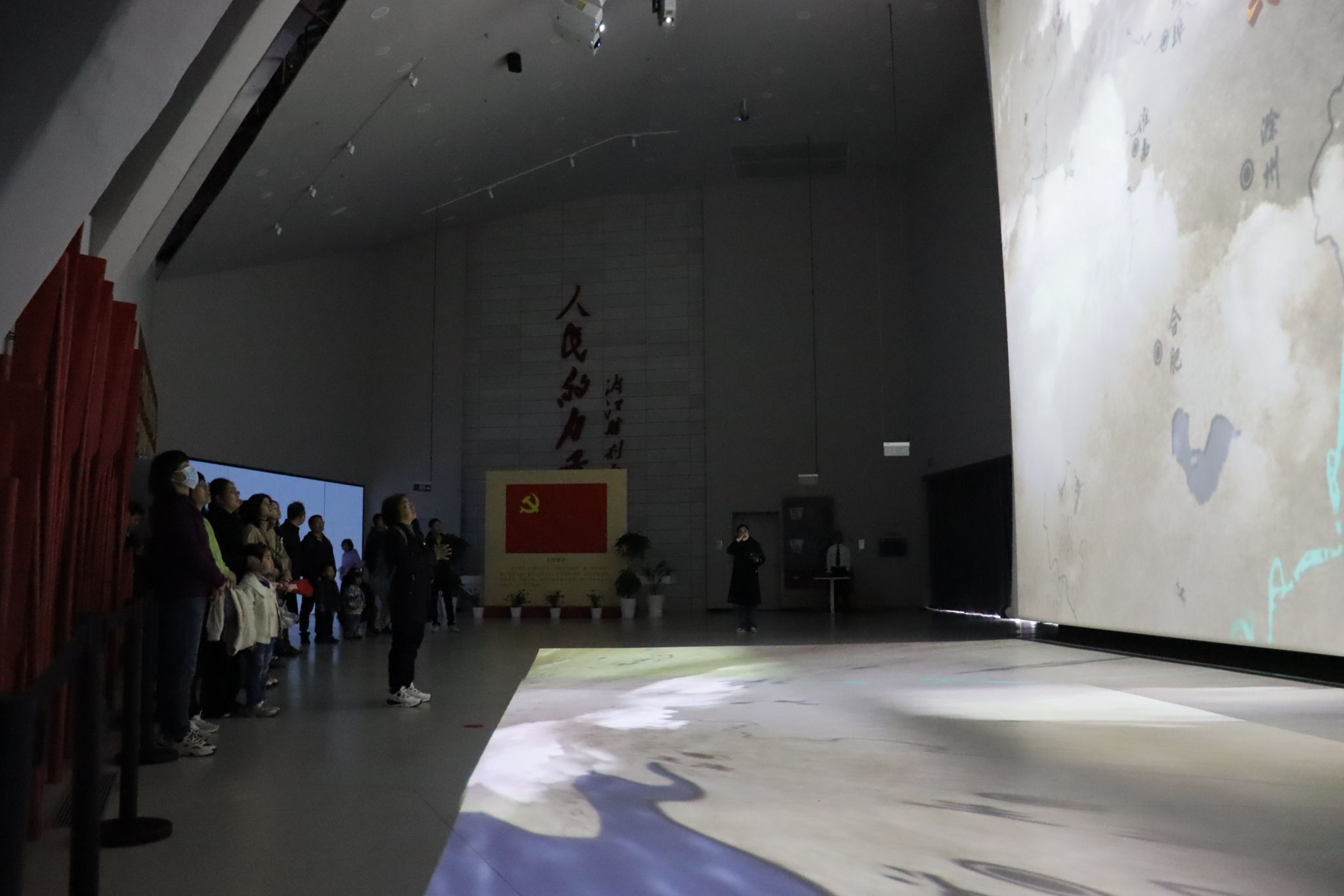 走进馆内,首先看到一幅大型浮雕,雕刻着各种神态的解放军勇士们在渡江,气势恢宏,浮雕对面有习近平总书记题写的“渡江战役的胜利是靠老百姓用小船划出来的”红色大字。之后党员同志依次参观了“决战千里”、“军民团结”、“革命到底”、“见证胜利”等主题展厅。一张张弥足珍贵的历史照片、一件件承载岁月记忆的文物展品,以及一幕幕震撼人心的影像资料,全方位呈现了渡江战役和南京解放这一伟大历史事件。展览中,在场党员同志深深为战士们的英勇无畏和军民团结一心的革命精神所感动,大家长时间流连其中,感慨万千。