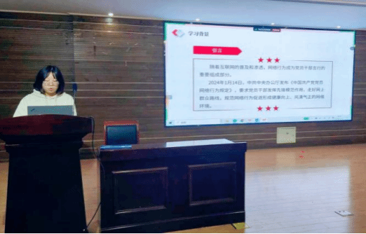 研究生思行党支部活动由支部组织委员江文同志主持,他领学了习近平总书记在全国教育大会上重要讲话的重要思想,强调教育工作者不仅要传授知识,更要培养具有创新精神和社会责任感的人才。接着,周生杰同志领学《中国共产党党员网络行为规定》内容,他用生动的漫画,巧妙地将规定中的“禁止行为”和“倡导行为”进行了对比,让党员同志们对“如何在网络空间中遵守党的纪律、维护党的形象”有了更加明确的认识。