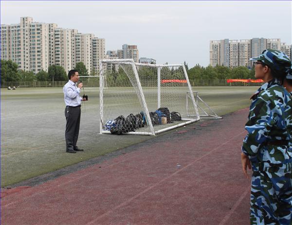 军训场地上,新生们排着整齐划一的队列,英姿飒爽的欢迎着老师们的到来。一营六连的曾连长首先向学院领导们汇报了军训的具体情况。听到新生们在军训中认真努力,刻苦训练,老师们感到很欣慰。
