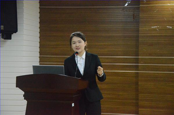 第三位上台的是物科院的刘丽颖学姐,她喜欢“把自己脑袋中的蓝图变成现实的感觉”,并且坚信着一个低的起点,并不意味着一个低的终点,“心之所向,素履以往”这八个字则是学姐一直贯彻践行的箴言。关于学生会,学姐强调干部的责任感,干部要与学生会的前辈们进行双向的交流;同时学姐指出了开扩眼界的重要性,这不仅仅能遇见更好的自己,还能接触人外有人的大牛们;接着学姐强调要努力走出舒适圈,不能让自己过于安逸;最后,学姐总结做为工科生要有文科生的心,“未来道阻且长,且行且热爱你的热爱。”