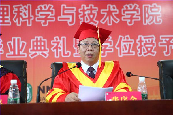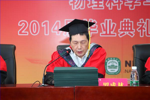 张序余副校长在掌声中为毕业生致辞。他代表学校向顺利完成学业的2014届毕业生表示祝贺,向为此付出辛勤劳动的物科院老师表示感谢,并对物科院的毕业生提出了三点期望:一是志存高远,追求梦想。走出校园,要学会去主动适应社会,要矢志不渝地为实现中华民族的伟大复兴梦不懈奋斗。二是自信担当,顶天立地。无论是做科研,还是当村官,创业经商,踏实做事,奉献社会,回报社会都是南师人永恒不变的承诺。三是上善若水,一生平安。铭记“正德厚生、笃学敏行”的校训,用“水善利万物而不争”的思想境界去不断汲取知识,形成高超的人生智慧和力量。全体毕业生用热烈的掌声表达了对张校长精彩致辞的感谢。