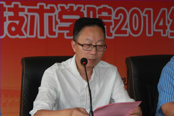 开学典礼上,党委书记周海忠代表学院向14级新生表示衷心的祝贺,并宣读2014年博彩论坛