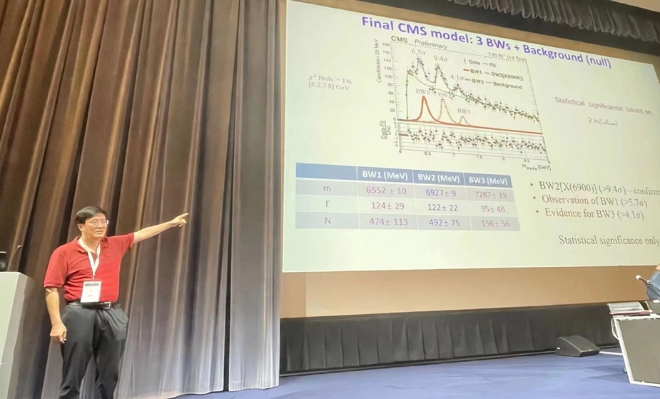 易凯代表CMS合作组在ICHEP2022报告研究结果(照片来源:娄辛丑)