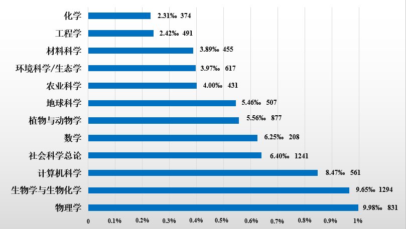 据统计,我校物理学在2012年1月1日至2022年6月30日期间共发表论文1963篇,总被引次数22673次,篇均被引次数11.55次,高被引论文22篇。在进入全球前1%的833个机构中,我校物理学位于第831名。