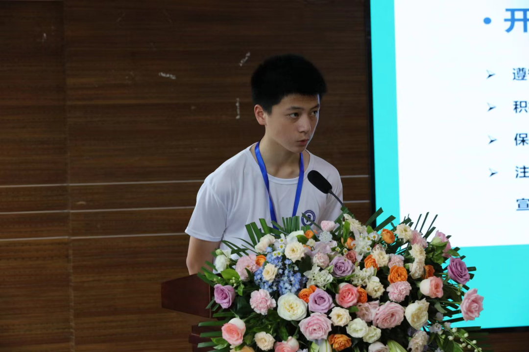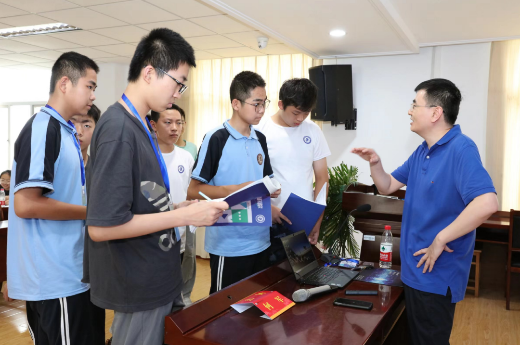 7月8日,在行健楼435报告厅,2023年初中生物理科学探索营顺利开营。学院褚红燕老师主持了开营仪式。物科院党委书记开云致欢迎辞,她对各位学员的到来表示诚挚欢迎。她指出,物理科学探索夏令营是一个集学知识、勤探索、乐交流于一体的平台,对于在座的同学来说,也是挖掘自己潜力展示自己才华的舞台。希望营员们积极参加各项活动,勇于探索和挑战自我。随后,来自徐州市树德中学的刘轩辰同学代表学员发言并领誓。最终,南京物理学会理事长周海忠为本次夏令营的6个队长授队旗并宣布正式开营,学员们高声宣读入营宣誓词。