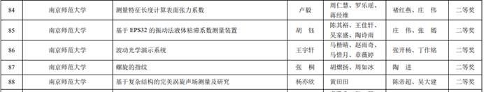 第二十届江苏省高校大学生物理与实验科技作品创新竞赛由江苏省物理学会、江苏省高校大学生物理与实验科技作品创新竞赛组织委员会主办,淮阴师范学院承办,为省级高水平物理赛事。全省共有44 所高校参赛,参赛项目 398 项,其中论文类 72 项,实验类 326 项。经过竞赛组织委员会复审,共有 294 项进入决赛,其中论文类 55 项(本科生),命题实验类 77 项,自选实验类 162 项(本科生 154 项,研究生 8 项)。 决赛采取学生现场展示和答辩,专家集中评审的方式进行,经过决赛竞赛评审委员会评审(弃赛 1 项),共评出一等奖 37 项,二等奖 86 项,三等奖 101 项,优秀奖 69 项。