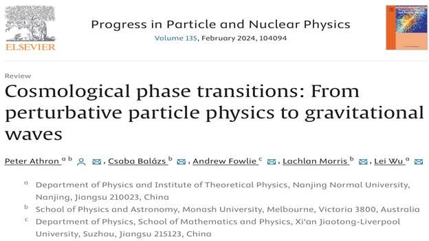 Peter Athron教授、武雷教授与合作者在粒子与核物理研究的顶级综述期刊《Progress in Particle and Nuclear Physics》杂志发表了题为“Cosmological phase transitions: From perturbative particle physics to gravitational waves”的文章。该论文是博彩论坛