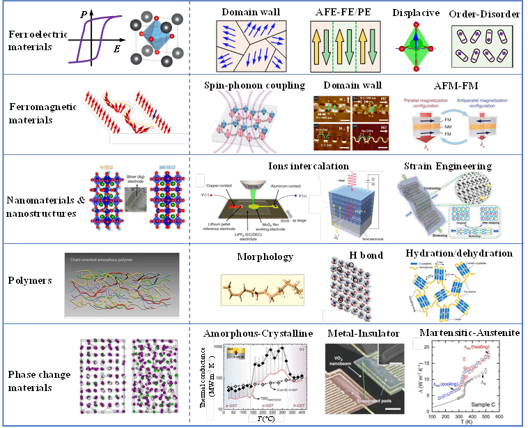 铁电材料、铁磁材料、纳米材料和纳米结构、聚合物和相变材料的导热系数调控机制