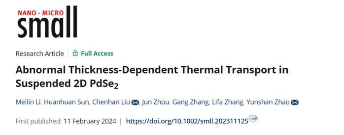 赵云山教授课题组在低维材料热导率实验测量与调控方面取得研究进展。相关结果以“Abnormal Thickness - Dependent Thermal Transport in Suspended 2D PdSe2”为题发表在国际重要期刊《Small》,期刊影响因子13.3。课题组研究生李美林,孙欢欢为论文的共同一作,博彩论坛