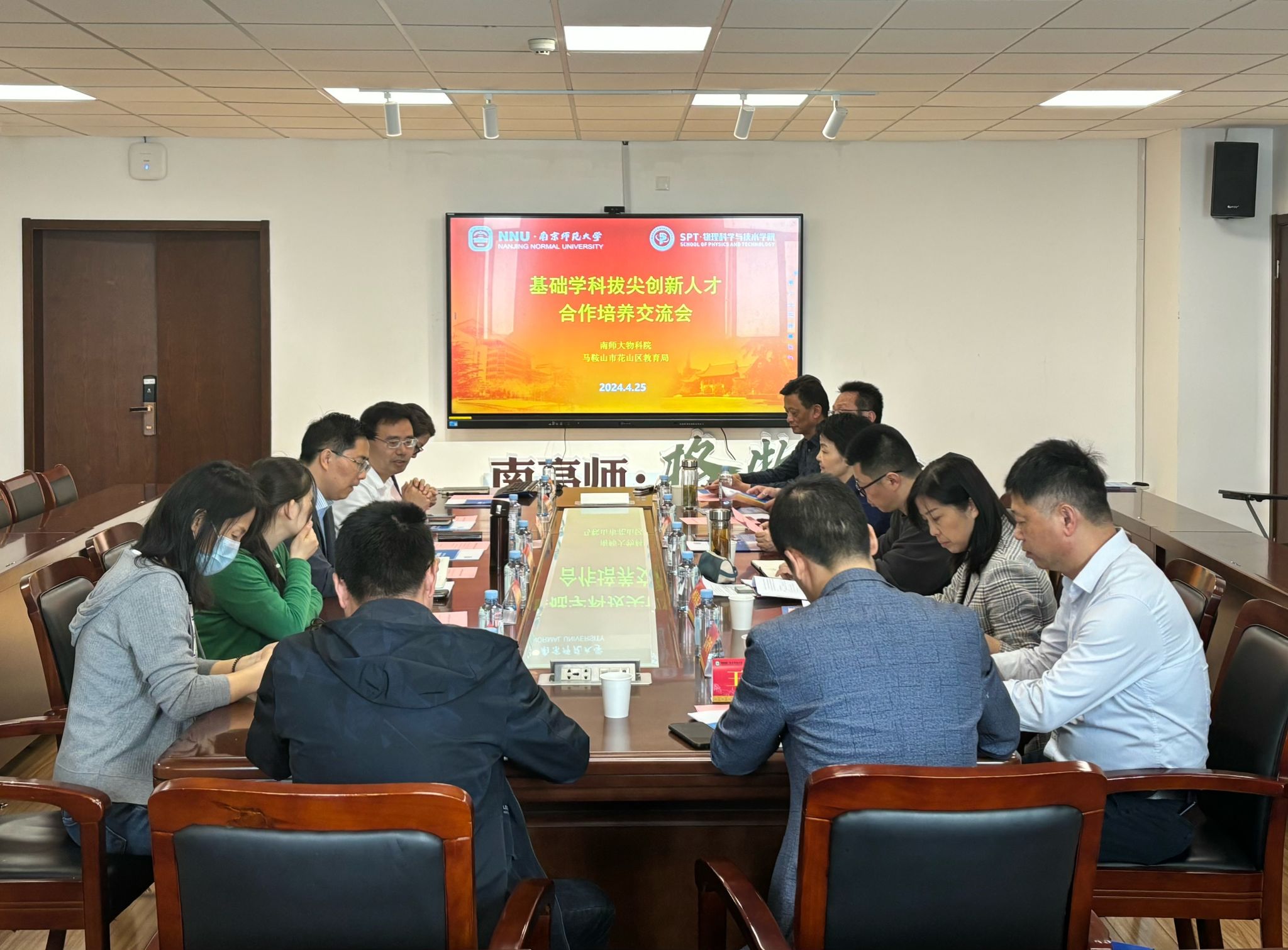 4月25日上午,物科院基础学科拔尖创新人才培养合作交流会在行健楼437会议室举行,本次合作交流会由南师大物科院和马鞍山市花山区教育局共同举办。