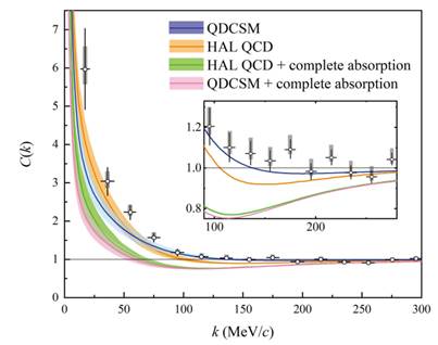 有关proton-Omega双重子态的研究是强子物理领域中一个重要课题,尤其有助于理解奇特强子态以及强子-强子间相互作用。J^P=2^+量子数的proton-Omega双重子态由Los Alamos国家实验室的T. Goldman教授,南京大学的王凡教授和合作者们首次提出,并在此后被模型计算,QCD求和规则等理论工作以及格点QCD模拟证实存在。然而,由于Omega重子的衰变性质,很难通过传统的散射实验寻找proton-Omega双重子态。因此,费米镜关联函数的测量已成为实验研究强子-强子相互作用和寻找奇特强子态的有力工具