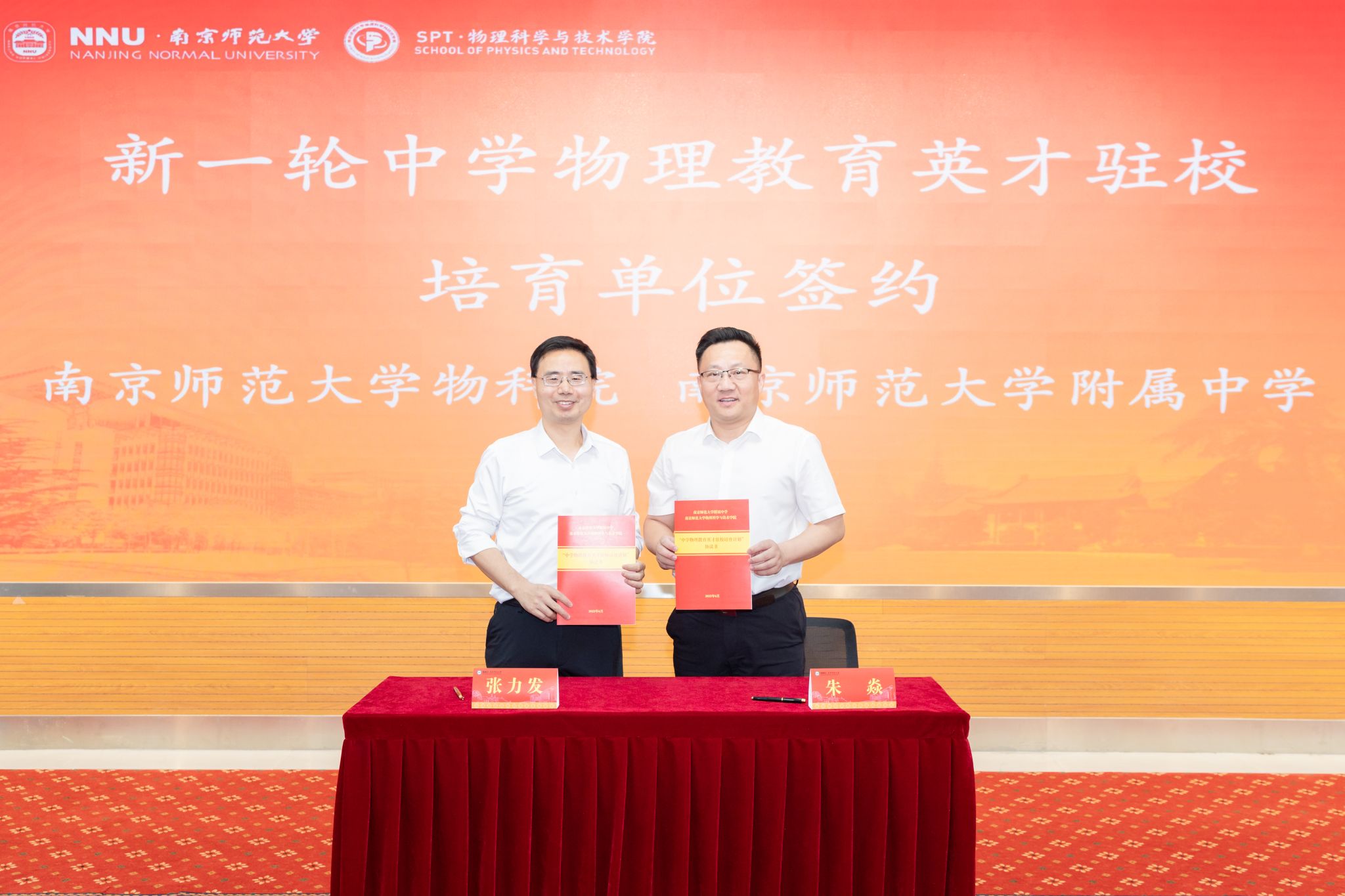 会上,张力发与朱焱签署“中学物理教育英才驻校培育计划”的新一轮协议。汪明宣读了名师工作站第五批校外导师名单。教务处副处长章月兵、物科院副院长吴大建分别为校外导师颁发聘书。新一批校外导师与2024级复合班学生一对一签署“五个一青蓝工程”项目约定书。