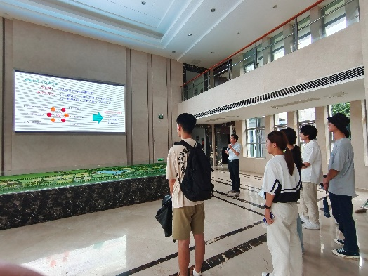 实践团来到研究院了解相关的技术和设备,着重学习了神农智慧研究院的四项关键技术。在数字农场指挥中心,讲解员向成员们展示了溧水区蓝莓种植基地的产业区块链,以及实时更新作物状态、土壤状态的相关模块。在参观蓝莓种植区的过程中,实践团成员们亲身体验了蓝莓种植过程,并在讲解员的指引下,考察了蓝莓大棚内的智能供暖设备和灌溉设备。