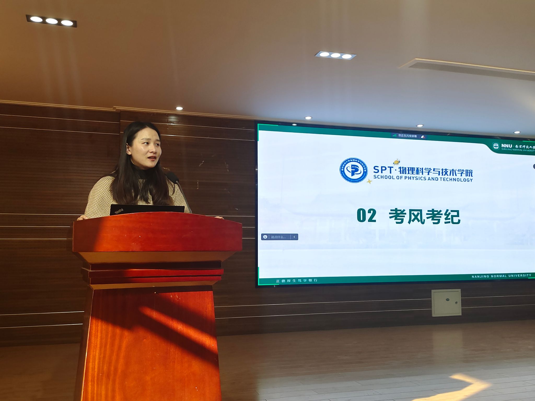 近日,为强化正确的考试观念,营造良好的考风考纪氛围,确保期末考试顺利进行,物科院积极响应学校号召,全面开展各年级考风考纪教育工作,从考前教育、明晰违纪处理办法、复习动员、加强考场巡视等多方面入手,为学生期末考试保驾护航。