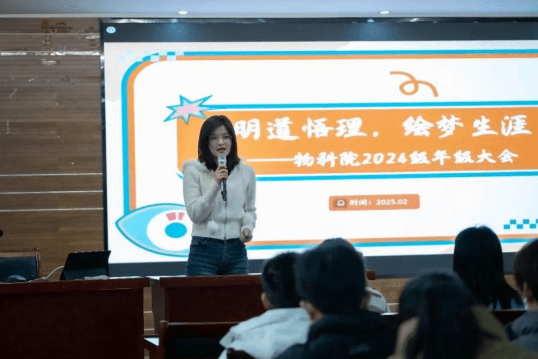 2024级年级大会上聚焦“明道悟理,绘梦生涯”主题,辅导员陈司老师深度剖析上学期学业情况,精准解读综测条例,细致复盘毕业生成长轨迹,帮助同学们进一步明晰发展路径。同时,她精心梳理并推介本学期“五育赋能”行动指南,为追梦学子稳健前行注入强劲动能。围绕“三要三不要”,着重强调宿舍消防、交通出行与反诈防骗等多领域安全问题,护航学子健康成长。