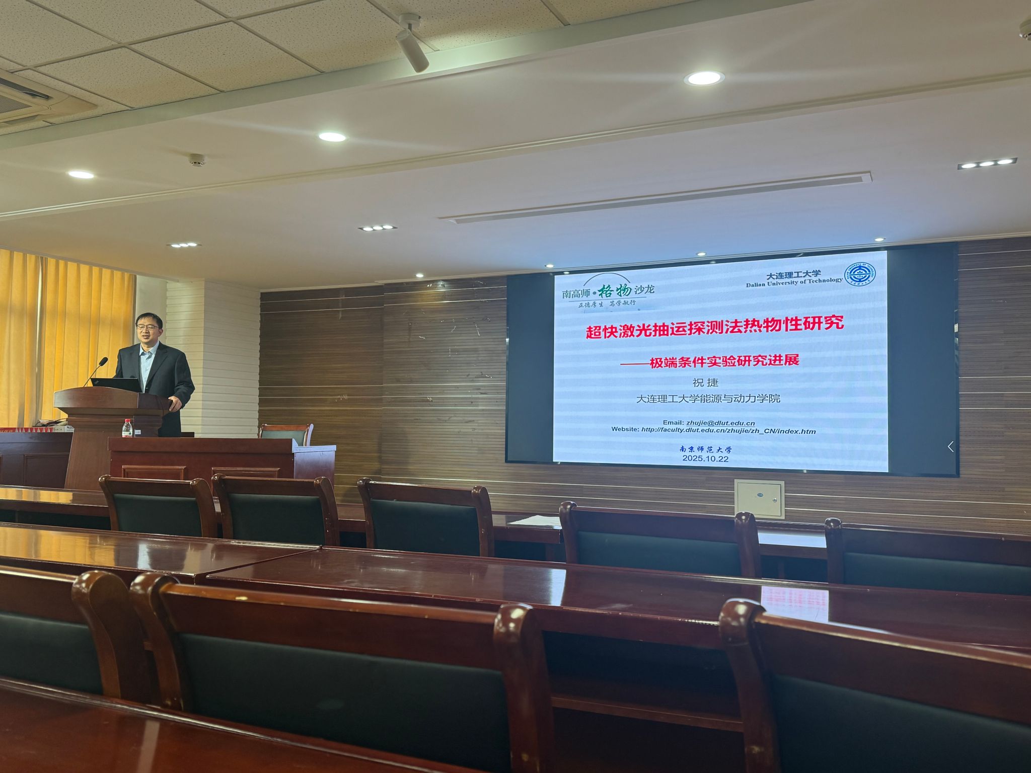 2025年10月22日,由物科院开展的【南高师·格物沙龙】邀请到了大连理工大学能源与动力学院祝捷副教授于行健楼435教室开讲,作了题为“超快激光抽运探测法热物性研究—极端条件实验研究进展”的学术报告。本次报告由物科院院长张力发教授主持,物科院教师、研究生、本科生共计80余人参加了本次报告会。