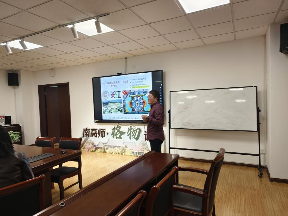 的【南高师·格物沙龙】系列讲座邀请中国人民大学的李蕾副教授在行健楼437会议室开展题为“北京谱仪实验粲强子半轻衰变研究”的学术讲座。物科院粒子物理相关领域的教师、研究生参加了报告会。