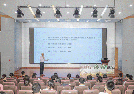 一百二十周年校庆,物科院启动高端品牌系列讲座 【南高师·格物论坛】,邀请了一批国内外物理学大师为学院师生开讲。本次论坛由北京大学教授,中国科学院物理研究所学术委员会主任王恩哥院士主讲。9月1日上午, 在敬文图书馆二楼东报告厅,王恩哥院士为在场师生作了题为“凝聚态物理中的全量子效应:氢与氢化物”的学术讲座,讲座由物科院院长张力发教授主持。物科院各专业教师、研究生、本科生等共计150多人参加了本次报告会。