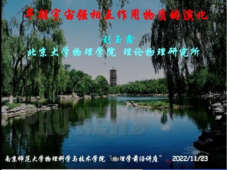 启动品牌系列讲座“南高师·格物云讲堂”,邀请国内外中青年杰出物理学者主讲。2022年11月23日,北京大学博雅特聘教授刘玉鑫教授在腾讯会议、蔻享直播会议室开讲,作了题为“早期宇宙强相互作用物质的演化”的学术报告。本次报告由物科院院长张力发教授主持,物科院教师、本科生、研究生及蔻享在线观众,共计1000余人参加了本次报告会。