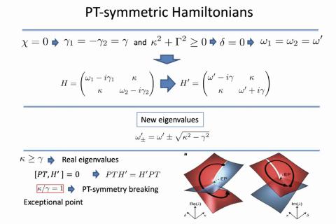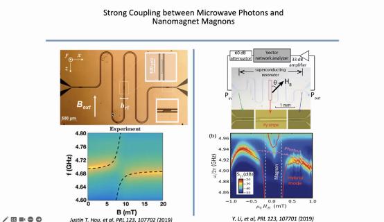 腔自旋电子学是近几年来凝聚态物理和量子信息领域的热门课题。在本报告中,夏教授首先对腔自旋电子学方向的进展进行了概述。接着,介绍了团队在磁振子-谐振腔耦合系统在信号/能量转换中的特殊意义,通过引入双音驱动系统产生复的有效耦合,导致赝厄米哈密顿量。复数实部和虚部的独立调谐提供了额外的自由度,允许形成四维参数空间,其中提出了三维异常曲面。这异常曲面允许我们形成一个类似PT的圆,其中PT和反PT对称异常点是统一的。最后,夏教授对腔自旋电子学进行了展望,认为磁振子极化子能够成为一个丰富的研究平台,并指出无论制造缺陷或系统频率的精确失谐如何,都可以实现奇异点的有趣现象。