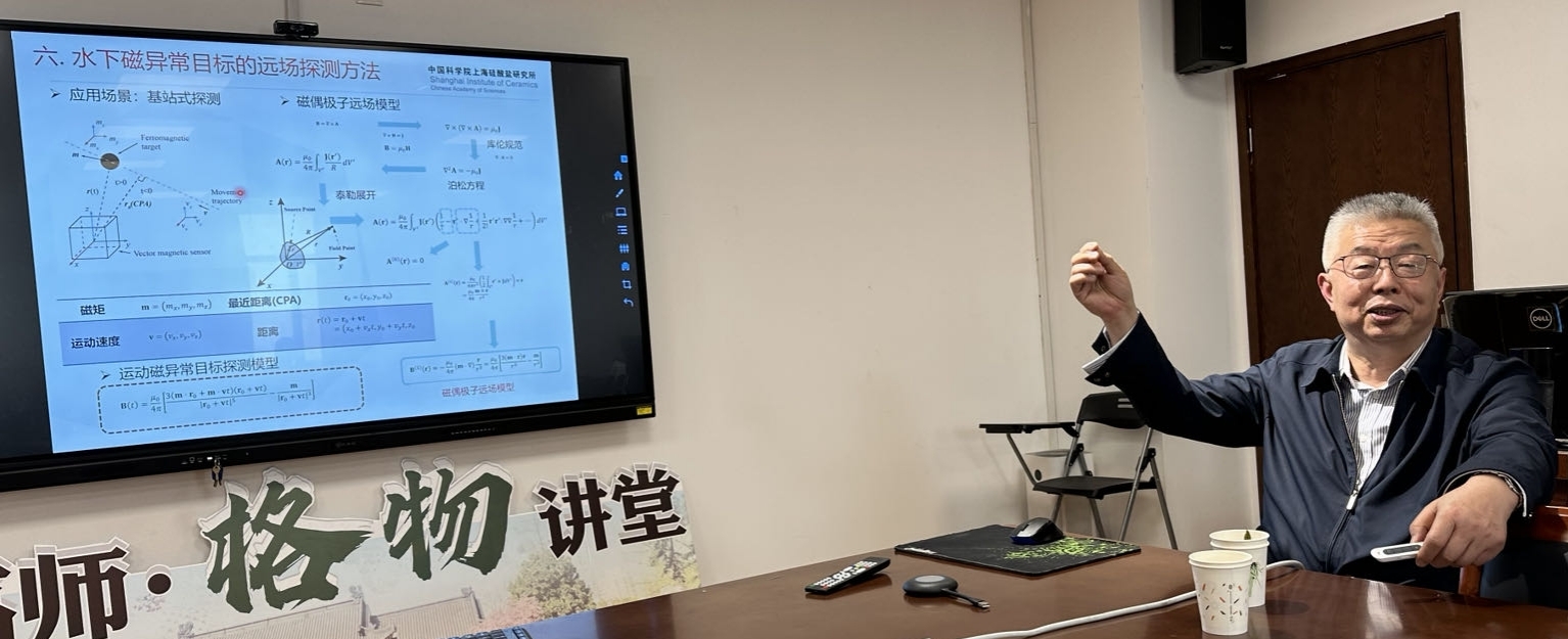 在本报告中,罗豪甦研究员首先介绍了其团队通过界面应变耦合,异质结磁电材料的极化强度可以随外磁场变化的磁-弹-电耦合效应,能够直接将激励磁场转变成电信号,结合读出电路就可以形成新原理磁电型弱磁传感器。其次,罗研究员介绍了该新原理下的磁传感器与传统磁传感器的不同。与磁棒线圈等通量型磁传感器不同,这种对体积依赖性不强的场强型传感器,特别有利于向小型化方向发展;与磁通门、巨磁阻抗、光泵传感器等需内部供电激励才工作的模式不同,磁电敏感元材料无源方式的磁与电的信号转换,可以发展低功耗的新原理磁场传感器;与光泵、磁通门相比,磁电型弱磁传感器的频响范围宽,并能够在大动态范围内能实现对微弱磁场信号的高保真探测,这些性能特点使得其有望发展成为新一代高性能弱磁传感器。在报告结束后,罗豪甦研究员对老师及同学们的提问进行了耐心的回答。