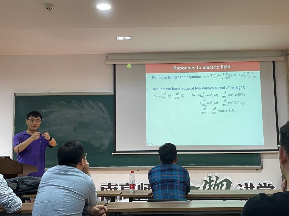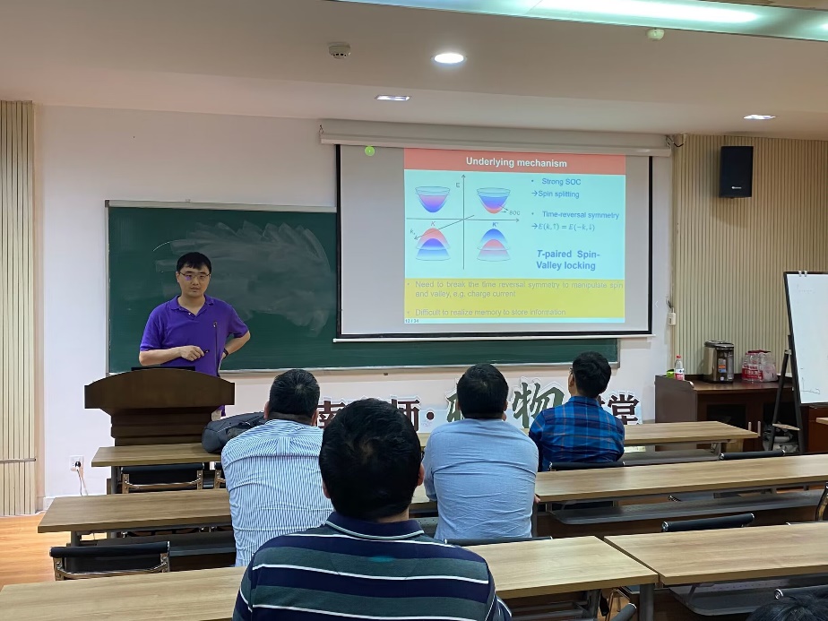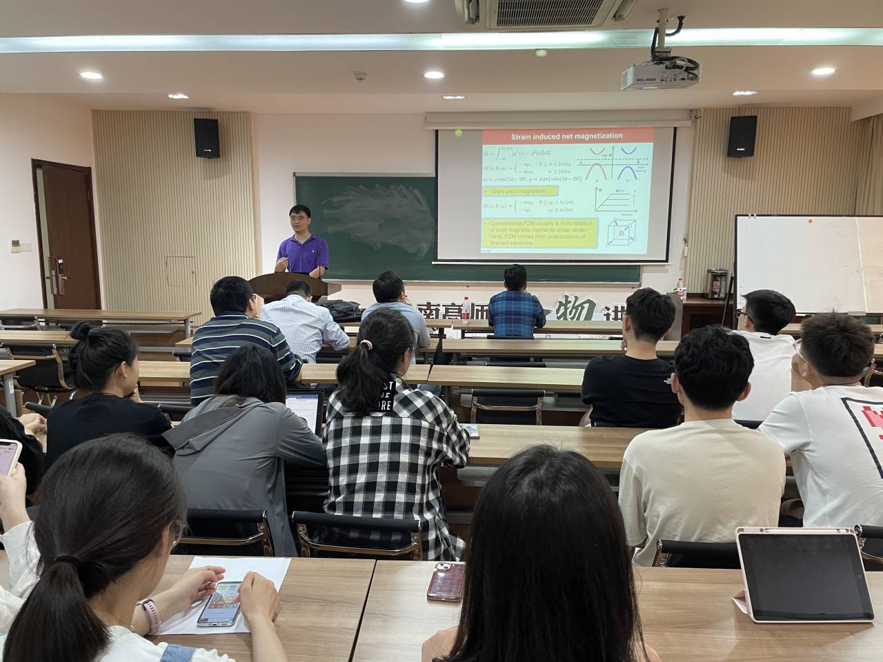 行健楼436教室开展了题为“Giant piezomagnetism and noncollinear spin current from C-paired spin valley locking”的线下讲座。讲座由物科院李晓教授主持。物科院各专业教师和研究生参加了本次报告会。