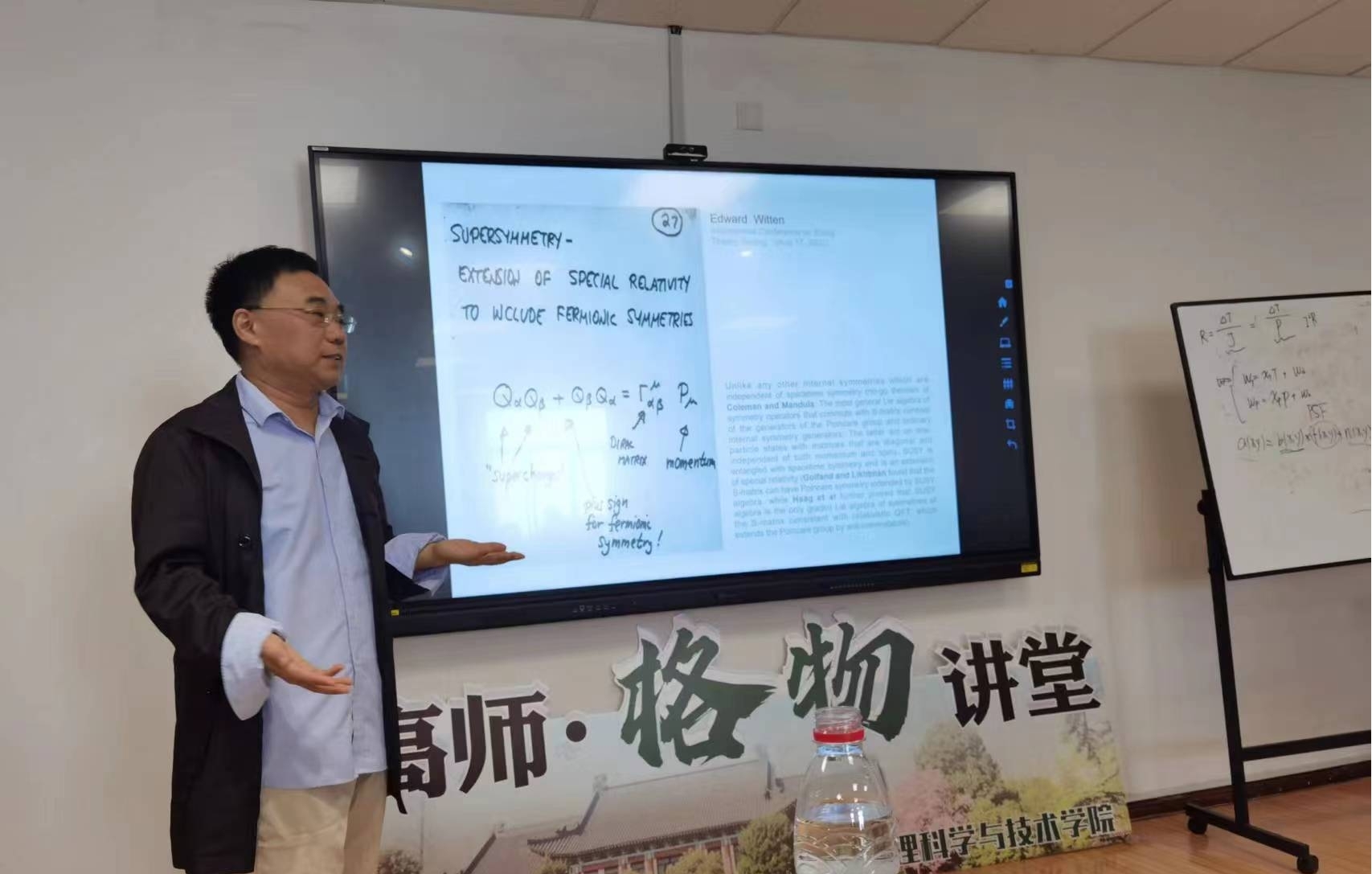 开展品牌系列讲座——“南高师·格物名师讲堂”,邀请中国科学院理论物理研究所二级研究员开展系列讲座。2023年4月27日上午,中国科学院理论物理研究所杨金民研究员在行健楼437会议厅开展题为“缪子的反常磁矩和超对称理论”的讲座,本次报告由物科院副院长武雷教授主持,学院多位教师以及研究生参加了本次报告会。