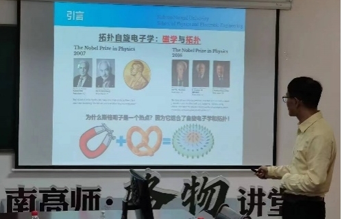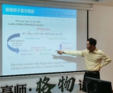 启动品牌系列讲座“南高师·格物讲堂”,邀请国内外中青年杰出物理学家主讲。2023年5月16日,四川师范大学赵国平教授在物科院行健楼401会议室作了题为“拓扑自旋结构的微磁学研究进展”的学术报告。物科院教师、研究生、本科生参加了本次报告会。物科院马付胜教授主持了本次报告。