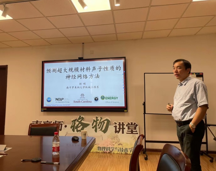 2023年6月20日,由物科院开展的品牌系列讲座“南高师·格物讲堂”邀请到了美国南卡罗来纳大学机械工程系胡明教授,在行健楼437作了题为“预测超大规模材料声子性质的神经网络方法”的学术报告。本次报告由物科院院长张力发教授主持,物科院教师、研究生共计20余人参加了本次报告会。