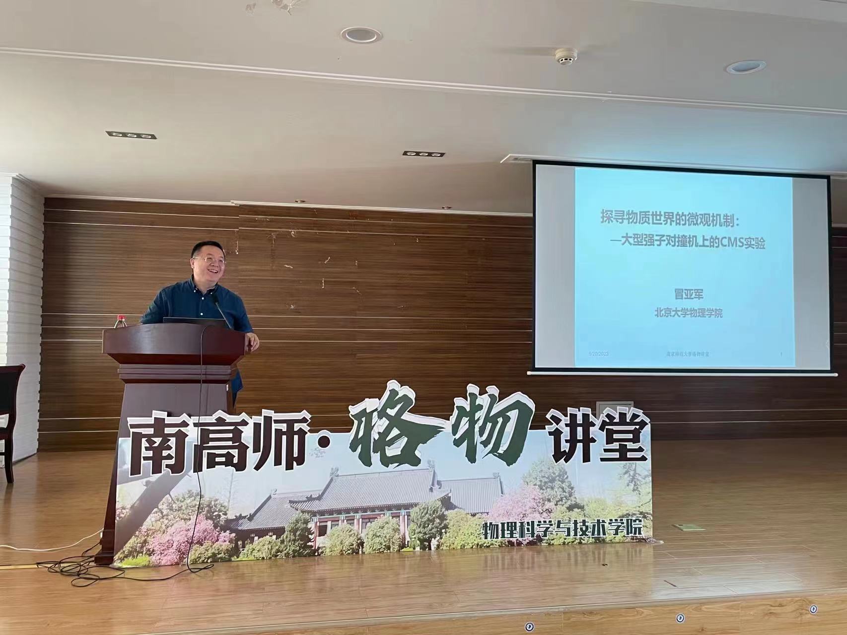 2023年6月20日,由物科院开展的品牌系列讲座“南高师·格物讲堂”邀请到了北京大学教授、CMS中国组协调人(National Contact Person)冒亚军教授,在行健楼435作了题为“探寻物质世界的微观机制—大型强子对撞机上的CMS实验”的学术报告。讲座由物科院易凯教授主持,物科院相关领域教师和研究生、本科生参加了本次报告会。