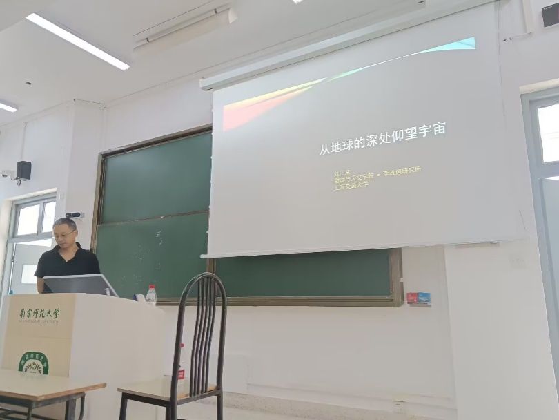 人类对基本物质组成的探寻不曾停歇——2023年10月11日,由物科院开展的品牌系列讲座【南高师·格物讲堂】邀请到了暗物质探测PandaX实验首席科学家,上海交通大学刘江来教授,在学海楼410室作了题为“从地球的深处仰望宇宙”的前沿学术报告。讲座由物科院武雷教授主持,物科院的相关领域教师和研究生、本科生参加了本次报告会。