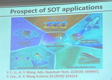 自旋电子器件具有非易失、速度快、能耗低和抗辐射的优点,用全电学的方法对器件中自旋进行可控翻转是其走向应用的重要途径,它不仅具有重要的科学意义,而且具有巨大的潜在应用价值。利用自旋轨道转矩实现对垂直磁性材料的定向磁化翻转,通常都需要有外磁场的辅助。王开友研究员介绍了其团队基于层间交换耦合、横向自旋轨道矩、自旋流密度梯度及相反自旋霍尔角合金等方案,分别实现了室温零磁场下全电控垂直磁性材料的可控定向翻转、简单的逻辑功能及自旋人工智能功能演示等。为进一步突破基于垂直金属铁磁器件性能瓶颈,王老师团队还发现了决定全二维铁磁/半导体异质结中自旋注入的效率的关键因素,揭示了Fe3GeTe2/GaSe/Fe3GeTe2中磁电阻效应与中间半导体层的依赖关系,在Fe3GaTe2/WSe2/Fe3GaTe2中实现室温下大的磁电阻效应;实现了全电控非共线反铁磁Mn3Sn的可控翻转。