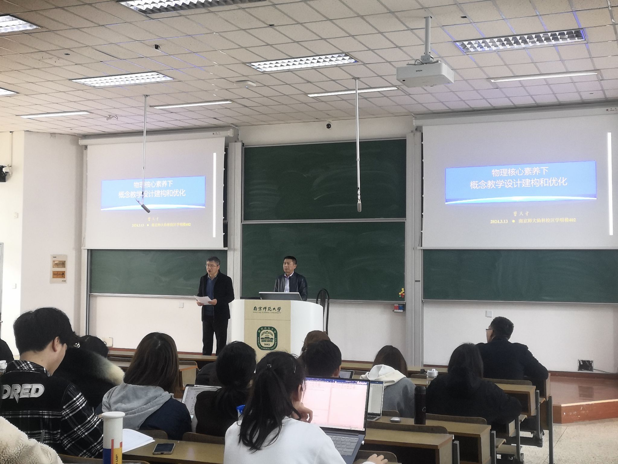 、物理教育研究所与教师教育学院联合举办“南高师·格物名师讲堂”,邀请福建省特级教师曹义才老师和连江尚德中学副校长李永程老师在学明楼402开展了两场讲座。本次讲座由物理教育研究所所长陆建隆教授主持,物理教育研究所成员、教师院学科(物理)教师、物科院20、21级物理+技术复合班和部分物理(师范)本科生及22、23级物理教育硕士生参加了本次活动。